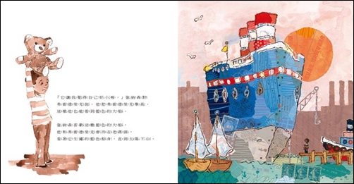 在東方社會裡,很多時候,大人自己都不太會處理自己的情緒,更遑論去把孩子的心情當一回事了。於是,在這個故事當中,好在強納森自己發揮了想像,展開了乘著藍色大船的「尋熊」之旅,來安撫自己受傷的心靈。這是發生在作者菲立普‧史戴身上的真實故事,他把自己小時候的貼身感受藉由故事和圖像描繪出來,藉此安慰廣大的孩子。
