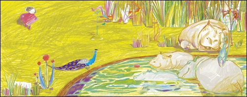 另外一位韓國的創作者蘇西‧李,則在她所創作的《動物園》一書,運用彩色和黑白對比的設計,來突顯孩子和大人的不同,以及大人即使帶著孩子一起出外遊玩,很多時候也心沒在事上。創作者藉由這樣的對比,來告訴我們孩子是多麼的活在當下,以及從孩子的角度所看見的世界是多麼的彩色繽紛。但是,大人往往因為心不在事上,因此就算和孩子一起去到動物園也常常心不在焉,完全無法像孩子那樣享受當下。